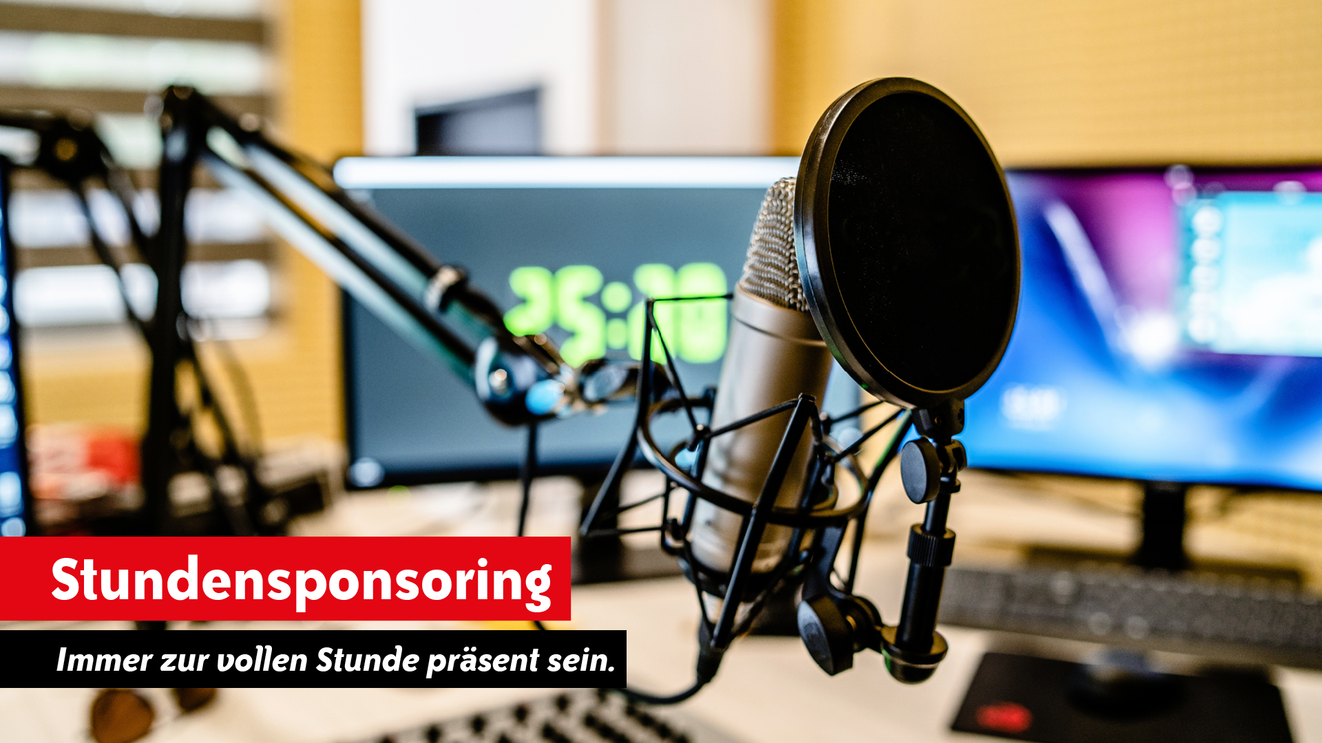 Als Sponsor einer ganzen Stunde Radioprogramm wird Ihre Marke zur vollen Stunde prominent genannt. So rufen sie Ihre Marke, ihr Produkt oder Unternehmen wirkungsvoll in Erinnerung bei unseren Hörer:innen.