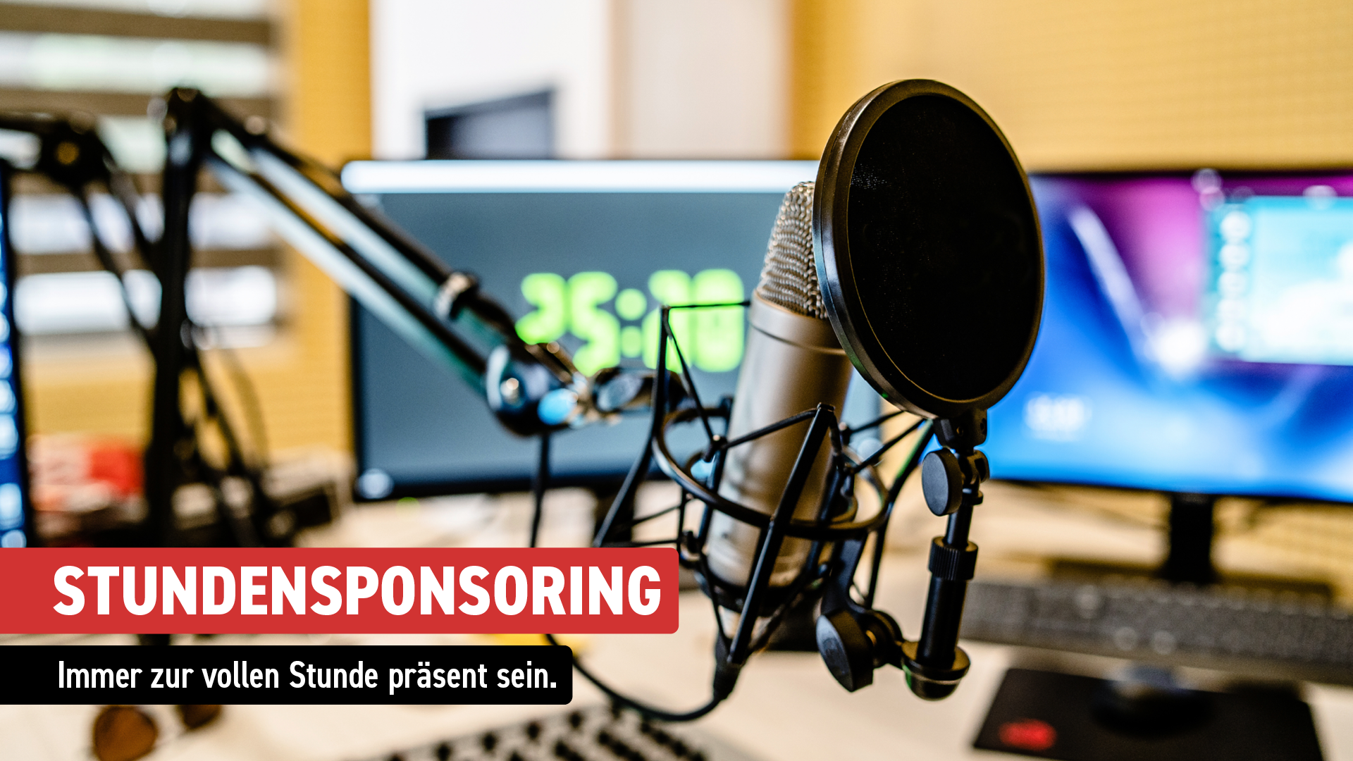 Als Sponsor einer ganzen Stunde Radioprogramm wird Ihre Marke zur vollen Stunde prominent genannt. So rufen sie Ihre Marke, ihr Produkt oder Unternehmen wirkungsvoll in Erinnerung bei unseren Hörer:innen.